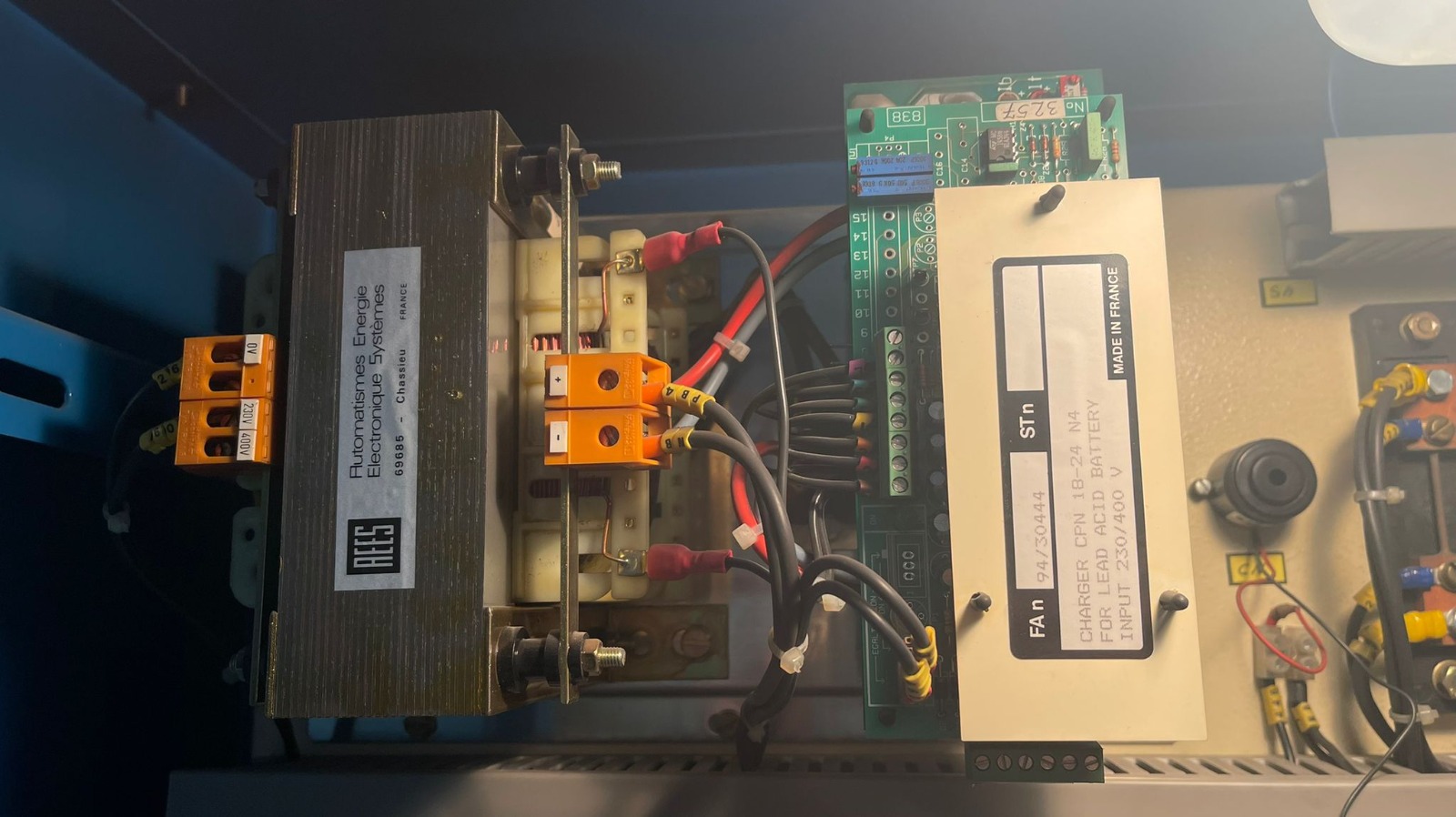 Con uno de nuestros talleres móviles nos desplazamos hasta la dirección del cliente para sustituir el cargador de mantenimiento del cuadro de arranque de un generador de emergencia.