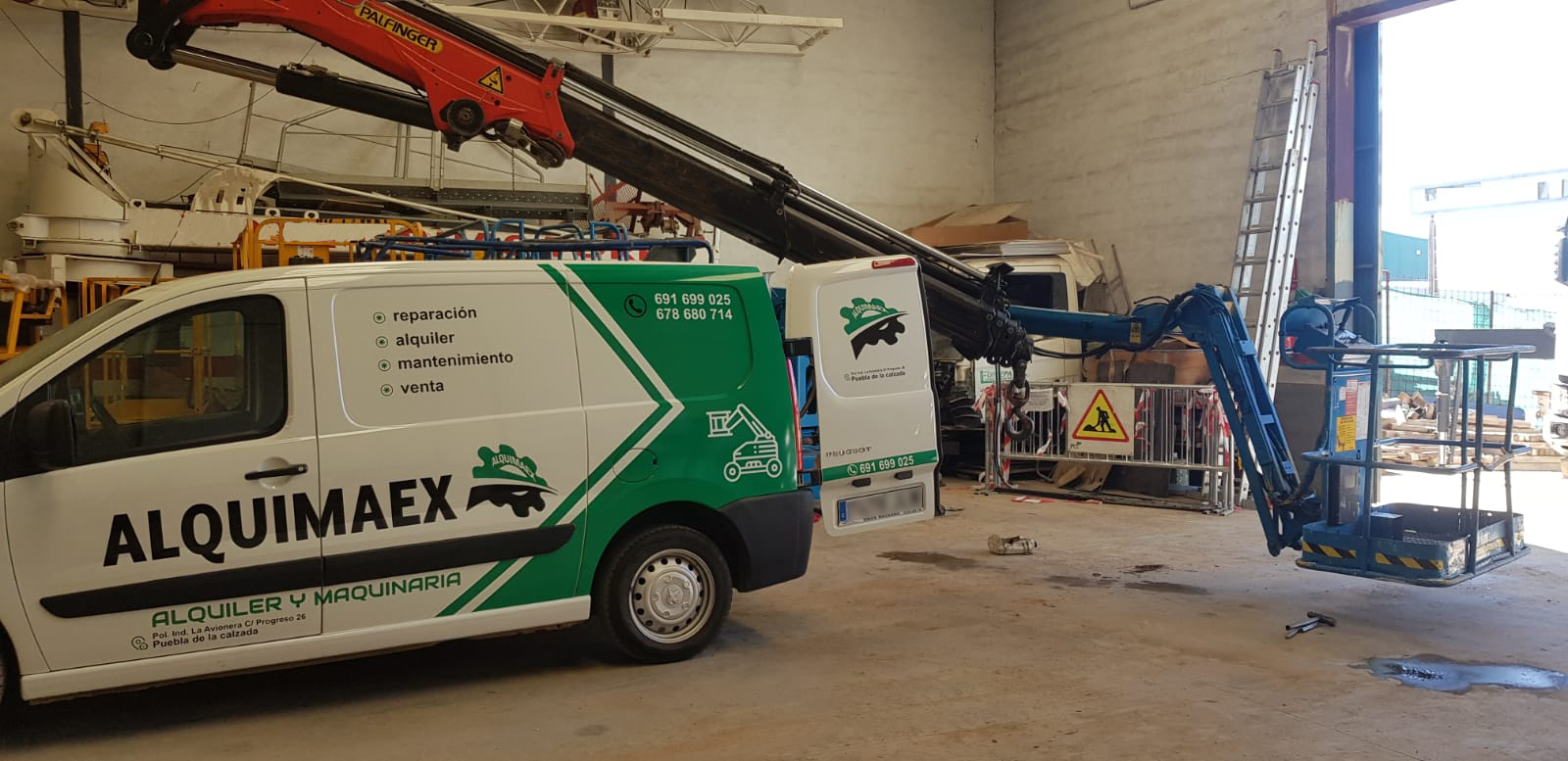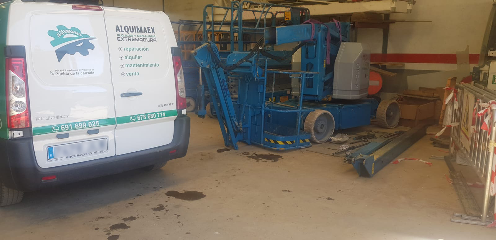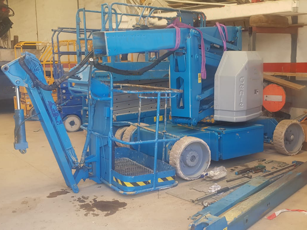 Reparación de la botella hidráulica del prolongador telescópico de este brazo articulado eléctrico en las instalaciones del cliente con nuestro taller móvil.