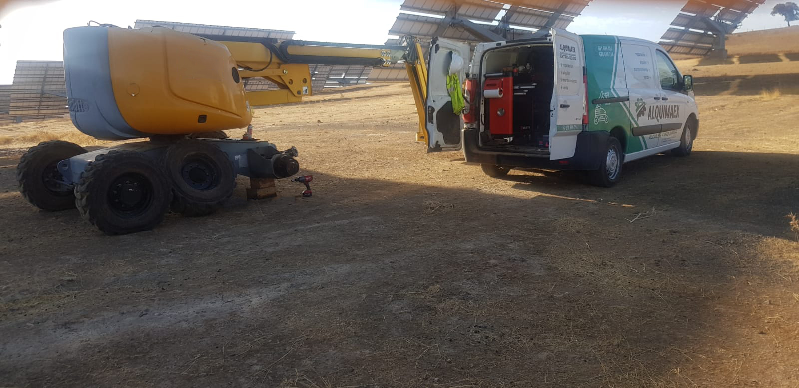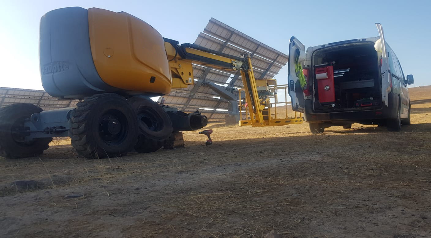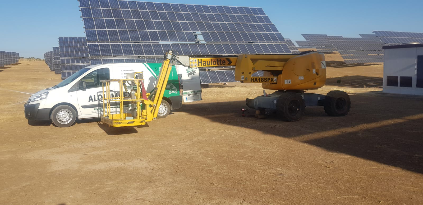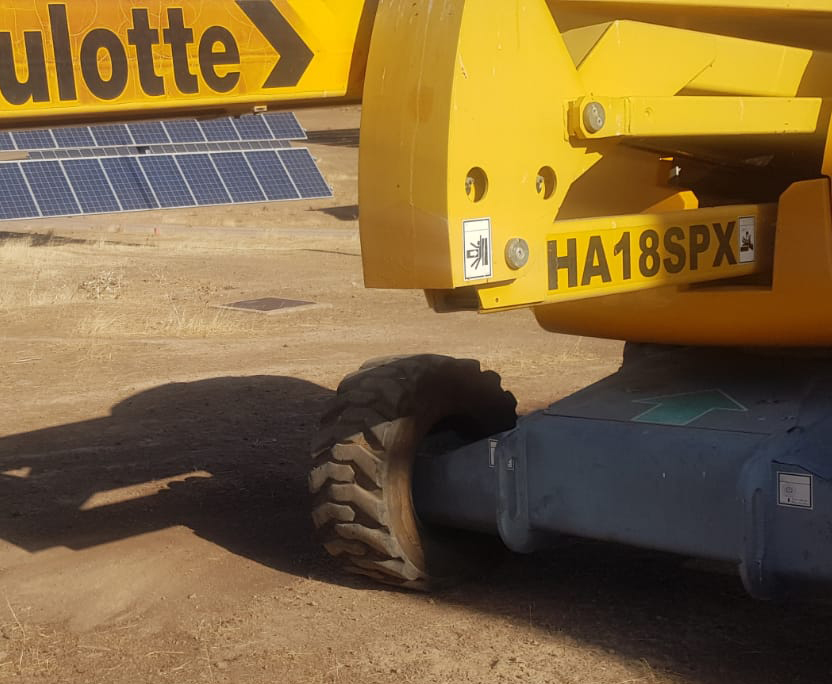En esta ocasión hemos reparado el cubo reductor de una de las ruedas delanteras de este brazo articulado Haulotte HA18SPX. Nos desplazamos a la planta solar donde estaba trabajando a quitar la rueda dañada, la reparamos en nuestro taller y hemos vuelto a la obra a montarla y comprobar que funciona perfectamente.