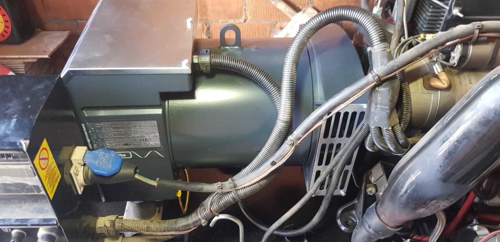 En esta ocasión nos desplazamos con uno de nuestros talleres móviles hasta el chalet de uno de nuestros clientes para sustituir el alternador trifásico de su grupo electrógeno que tiene de apoyo para sus placas solares. Le hemos instalado un nuevo alternador Meccalte trifásico de 13 Kvas anudado a monofásico y tras hacerle una completa revisión vuelve a trabajar de nuevo perfectamente.